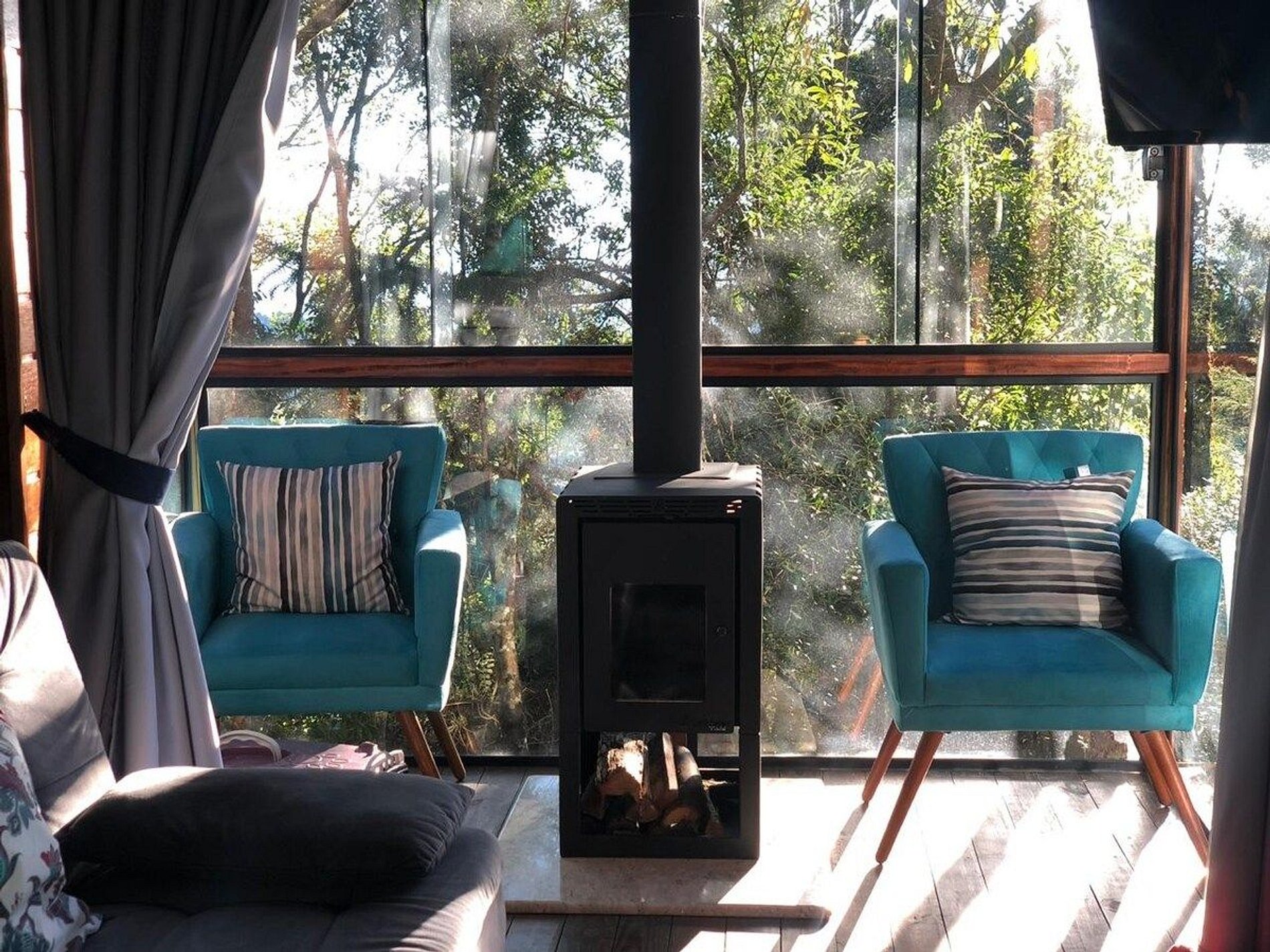 Chalet de madera, con un acogedor mirador de vidrio con chimenea, que brinda una vista increíble de la naturaleza. También tiene paredes de vidrio en el dormitorio - despierta con una hermosa vista, rodeado de mucha vegetación y el sonido de los pájaros. Estamos ubicados en un barrio residencial muy tranquilo. Pensamos en los más mínimos detalles para que tu estancia sea lo mejor posible. Como cortesía, dejamos un desayuno sencillo dentro del propio chalet.