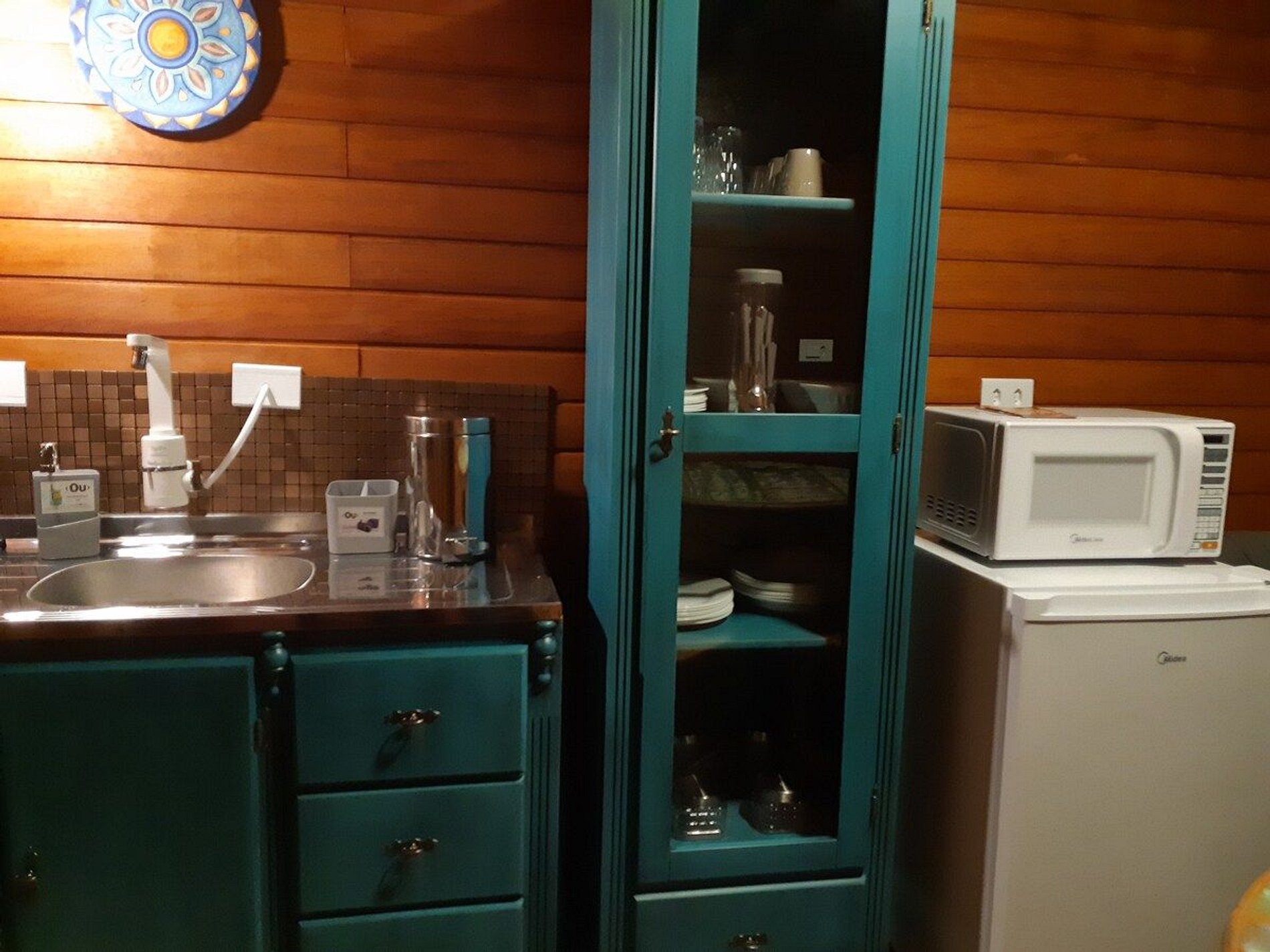 • La mini cocina dentro del chalet cuenta con: Frigobar, cafetera, pava eléctrica, sandwichera y microondas. Atención: ¡No hay estufa!
